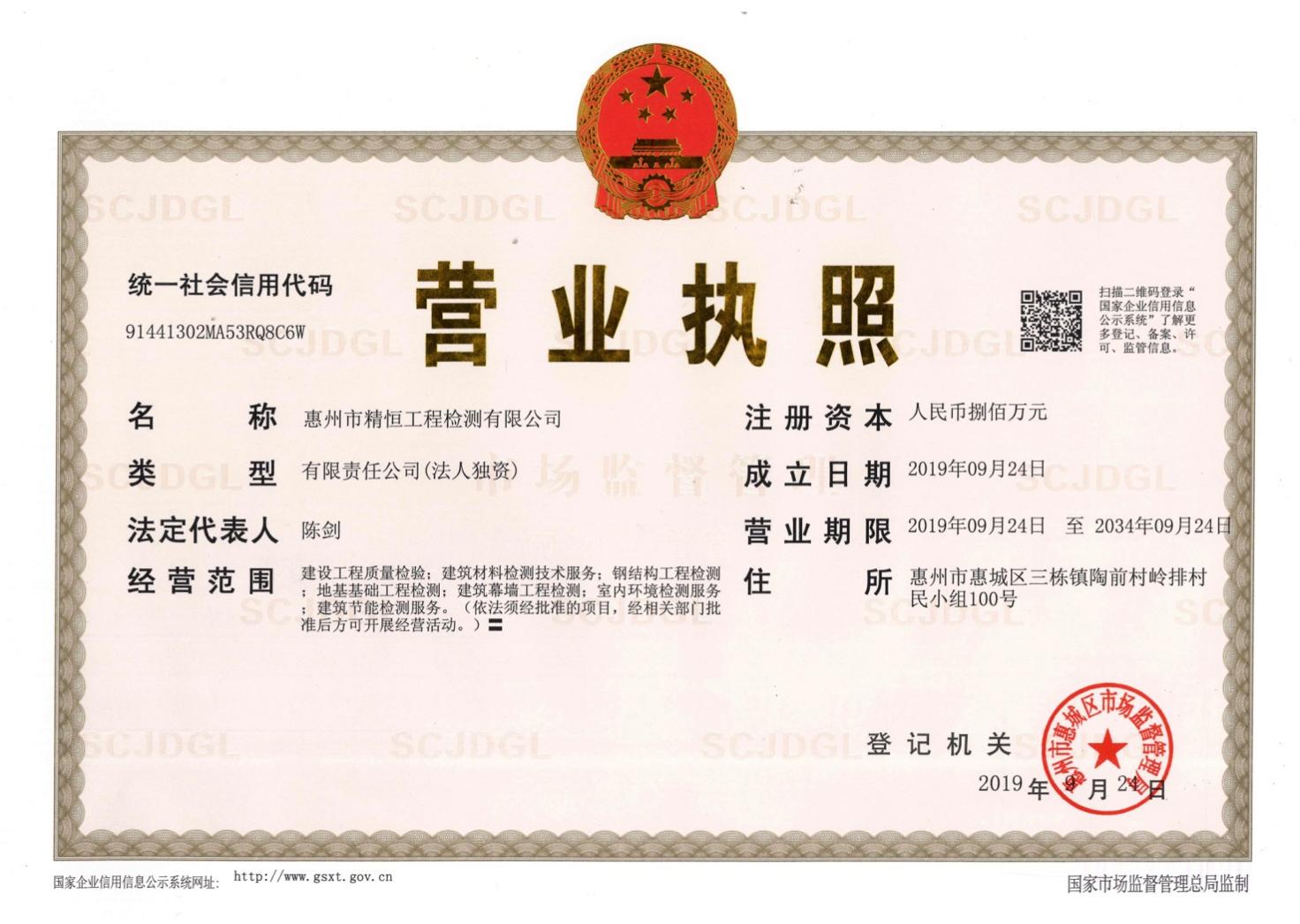 惠州市精恒工程检测有限公司是开云体育·开云官方网站-开云体育(中国) 旗下的全资子公司,位于惠州市惠城区三栋镇陶前村岭排村民小组100号,成立于2019年9月24日,注册资本800万元,是一家专业从事第三方检测、具有独立法人资格的检验检测服务机构。